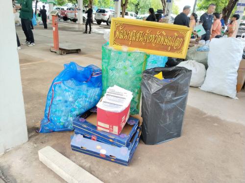 สำหรับกิจกรรมตลาดนัดขยะรีไซเคิล ส่วนราชการต่าง ๆ ได้นำขยะรีไซเคิลจากสำนักงานและที่พักอาศัยมาจำหน่าย เช่น กระป๋อง เหล็ก สังกะสี อะลูมิเนียม กระดาษ กล่องนม กล่องเครื่องดื่ม UHT ขวดแก้ว ขวดพลาสติก รวมถึงเครื่องใช้ไฟฟ้าเก่า โดยมีระบบการชั่งน้ำหนักและโอนเงินเข้าบัญชีธนาคารของเจ้าของขยะโดยตรง
