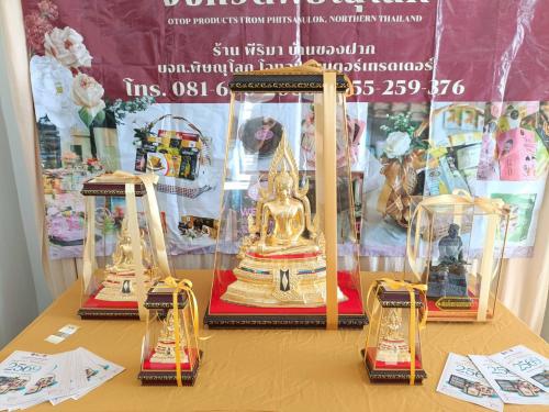 ในการนี้นายเกียรติศักดิ์ ตรงศิริ ผู้ว่าราชการจังหวัดพิษณุโลกได้เยี่ยมชมและให้คำแนะนำการจำหน่ายและประชาสัมพันธ์ กระเช้าของขวัญ ของฝาก จังหวัดพิษณุโลก