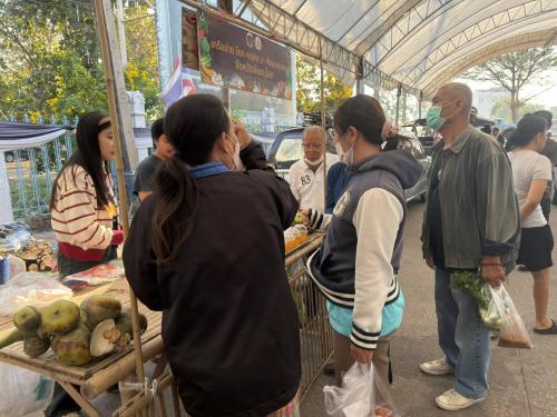 ในการนี้ นายชัยพร เขิมขันธ์ พัฒนาการจังหวัดพิษณุโลก มอบหมายให้นางสาวนภวรรณ สุขประเสริฐ นักวิชาการพัฒนาชุมชนปฏิบัติการ ผู้รับผิดชอบงานศูนยเรียนรู้ฯ โคก หนอง นา ระดับจังหวัด ติดตามเยี่ยมชมการดำเนินงานและเลือกซื้อสินค้าจากเครือข่ายโคก หนอง นา พัฒนาชุมชน จังหวัดพิษณุโลก และผู้ประกอบการที่จำหน่ายภายในตลาด