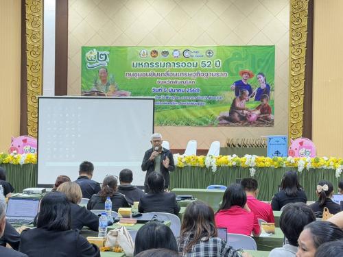 การให้ความรู้เรื่องการจัดทำบัญชีอิเล็กทรอนิกส์กลุ่มออมทรัพย์เพื่อการผลิต โดย นายยงยุทธ พันตารักษ์ อดีตผู้อำนวยการกลุ่มงานส่งเสริมการพัฒนาชุมชน สำนักงานพัฒนาชุมชนจังหวัดพิจิตร ผู้ออกแบบโปรแกรมบัญชีอิเล็กทรอนิกส์